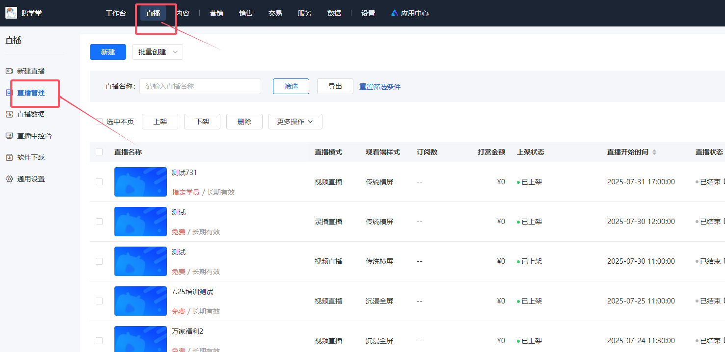 今天我来教大家怎么在小鹅通管理后台创建直播间: